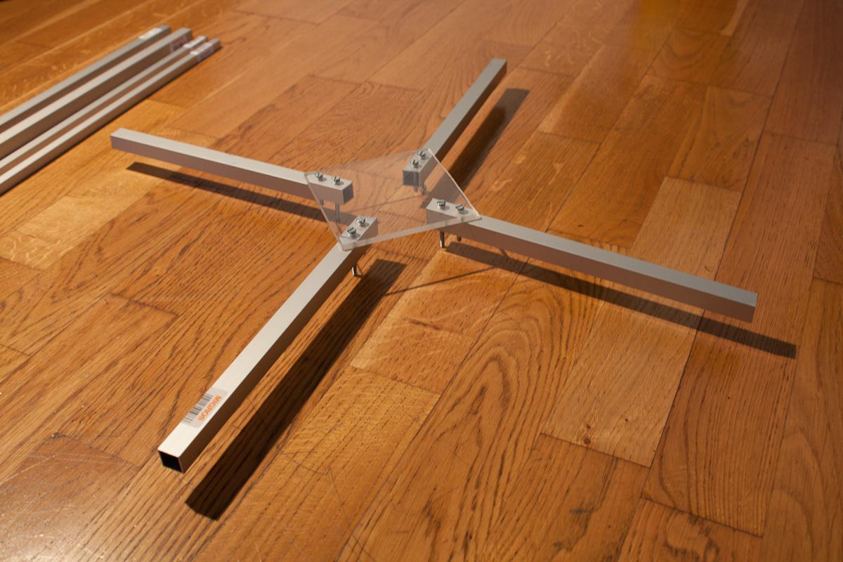 Los chasis en X son normalmente más ligeros por la reducción de material, pero debido a la falta de espacio, la construcción puede ser más complicada. Hay que apilar todos los componentes en el centro como si fuese una torre, incluyendo la cámara HD y la batería.