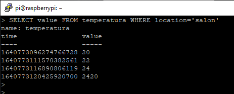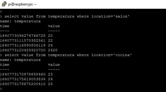 select value from temperatura where location='salon' select value from temperatura where location='cocina'