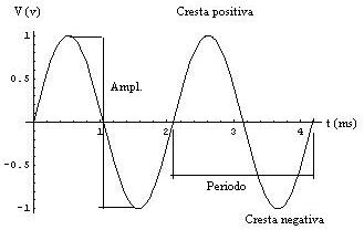 Los valores de la tensión crecen y decrecen de una forma regular a lo largo del tiempo primero con valores positivos y después con valores negativos. Las compañías eléctricas suministran este tipo de corriente con frecuencias de 50Hz y 220 VAC en Europa y 60Hz y 125VAC en América (Mayormente)